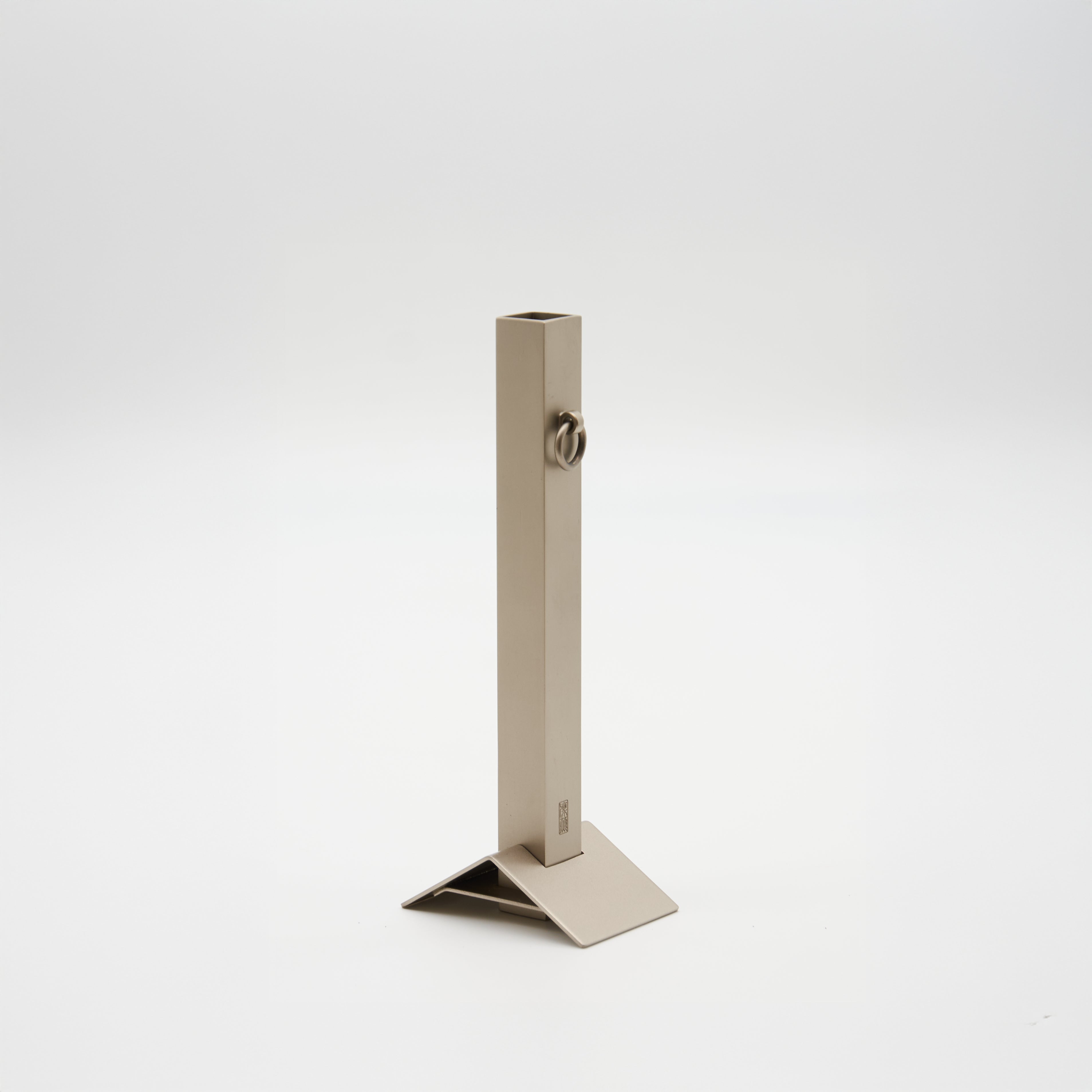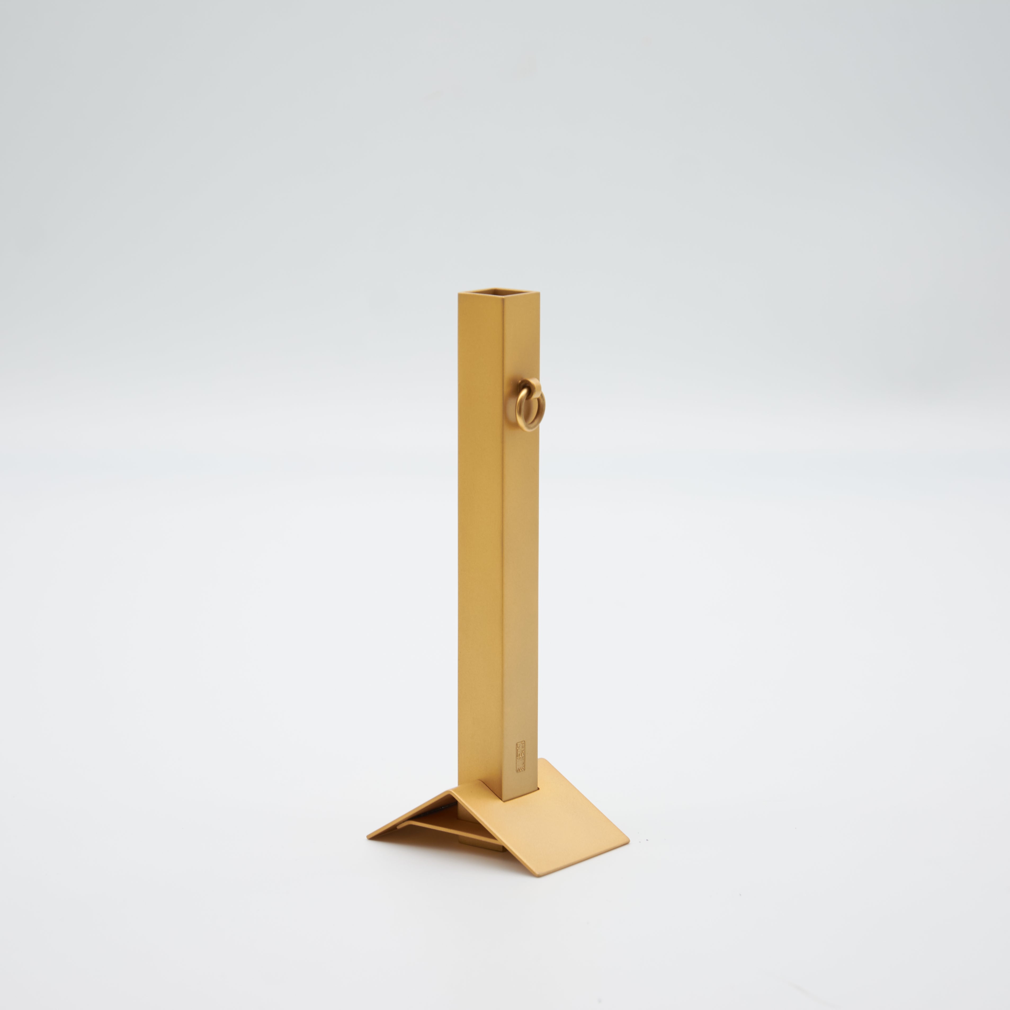 This single-flower vase evokes the lightness of bouncing on the surface of water, with its expanding ripple-like circle. The accents of foil and color capture the light and create a playful rhythm in the space.